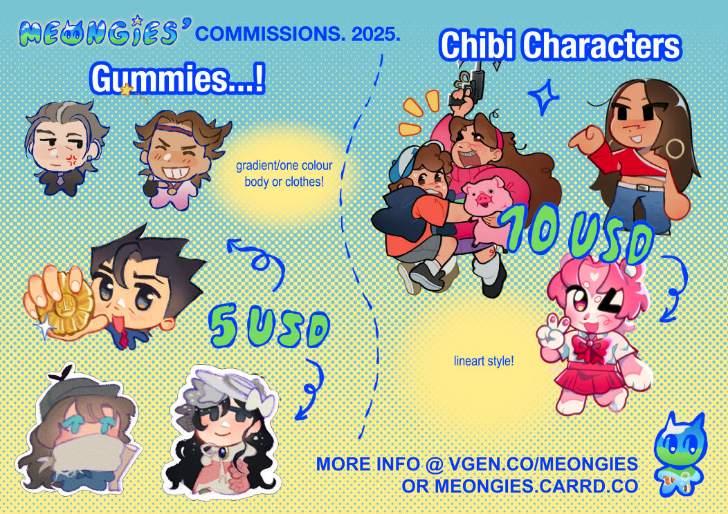 > prices listed are base prices (though largely standard), and may be subject to increase given the complexity of a character any other requests from the commissioner