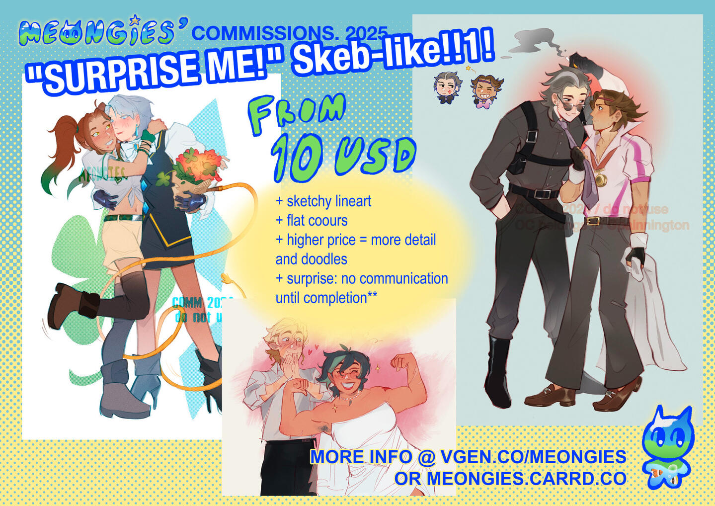 > prices listed are base prices (though largely standard), and may be subject to increase given the complexity of a character any other requests from the commissioner